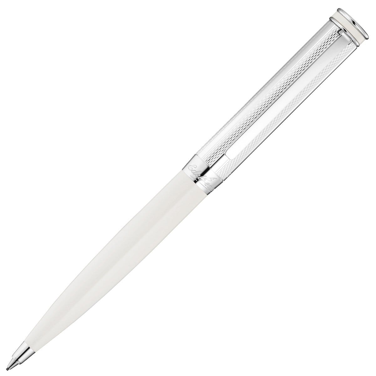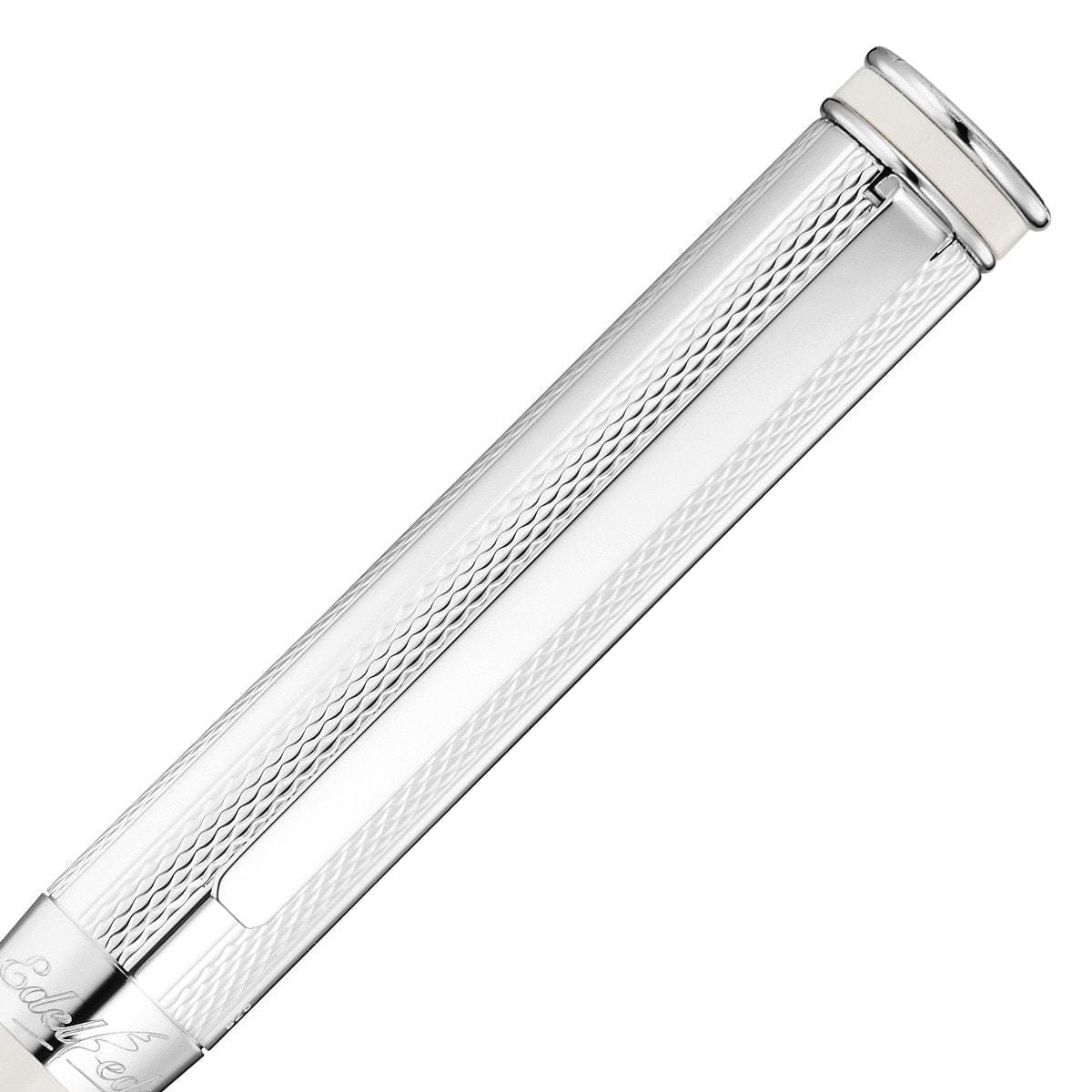 Der Waldmann Edelfeder Bleistift in weiß wird mit platinierten Zierelementen vervollständigt und hat ein kontemporäres Design.