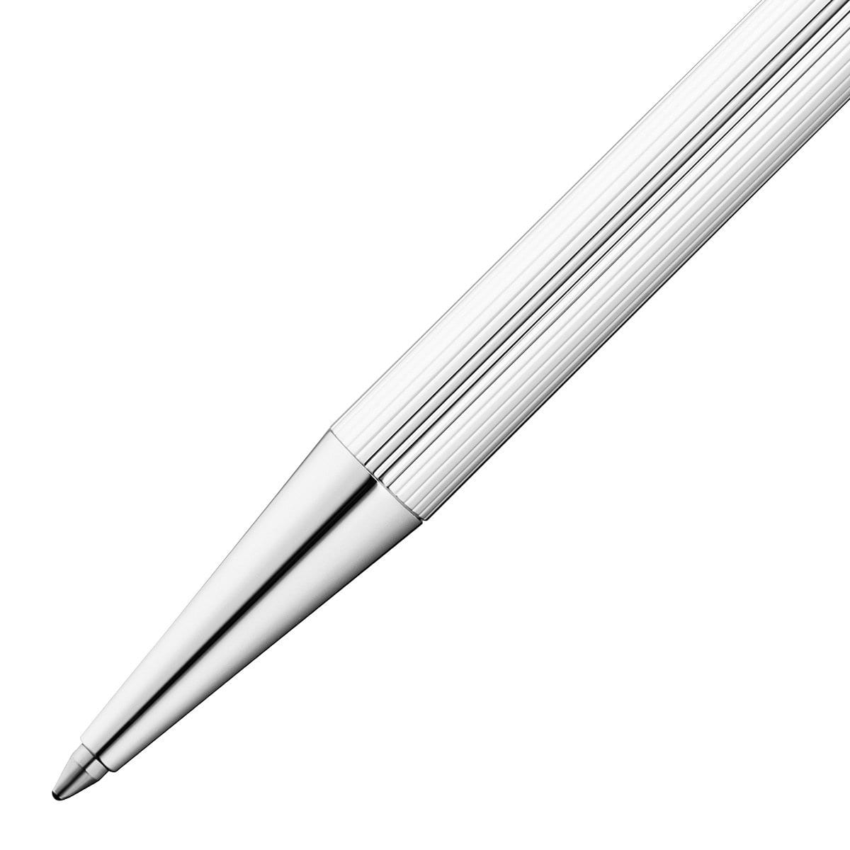 Der Waldmann Eco Kugelschreiber in silbern wird mit platinierten Zierelementen vervollständigt und hat ein kontemporäres Design.