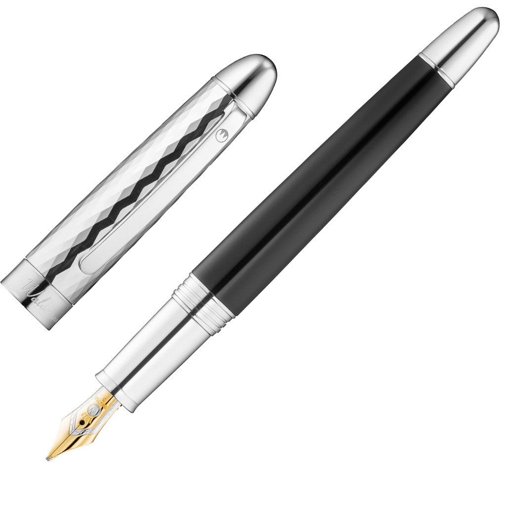 Waldmann, Füller Précieux, lackiert, wellenförmiger Diamantschnitt, 18K Feder, schwarz