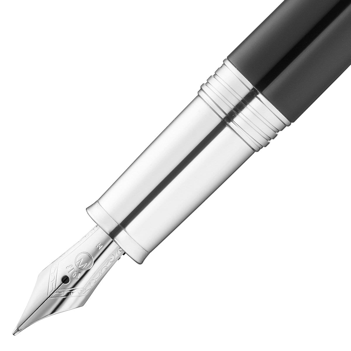 Die schwarze Farbe, ergänzt durch platinierte Zierelemente, ausgestattet mit einer Edelstahlfeder: Das ist der Waldmann Précieux Füllhalter!