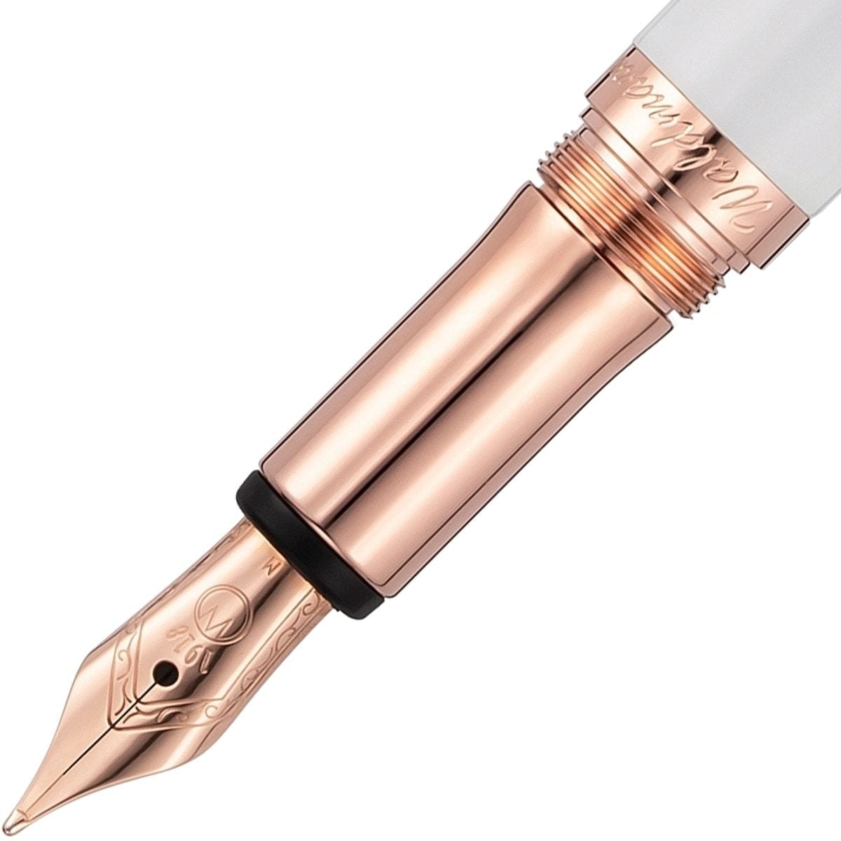 Der Waldmann Xetra Vienna Lady Füllfederhalter in weiß hat rosévergoldete Zierelemente und ein Modern Classic Design.
