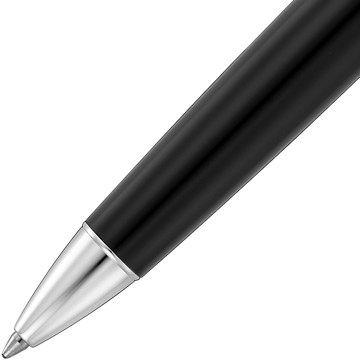 Die schwarze Farbe, platinierte Zierelemente und ein kontemporäres Design sind Hauptmerkmale des Waldmann Précieux Kugelschreibers.