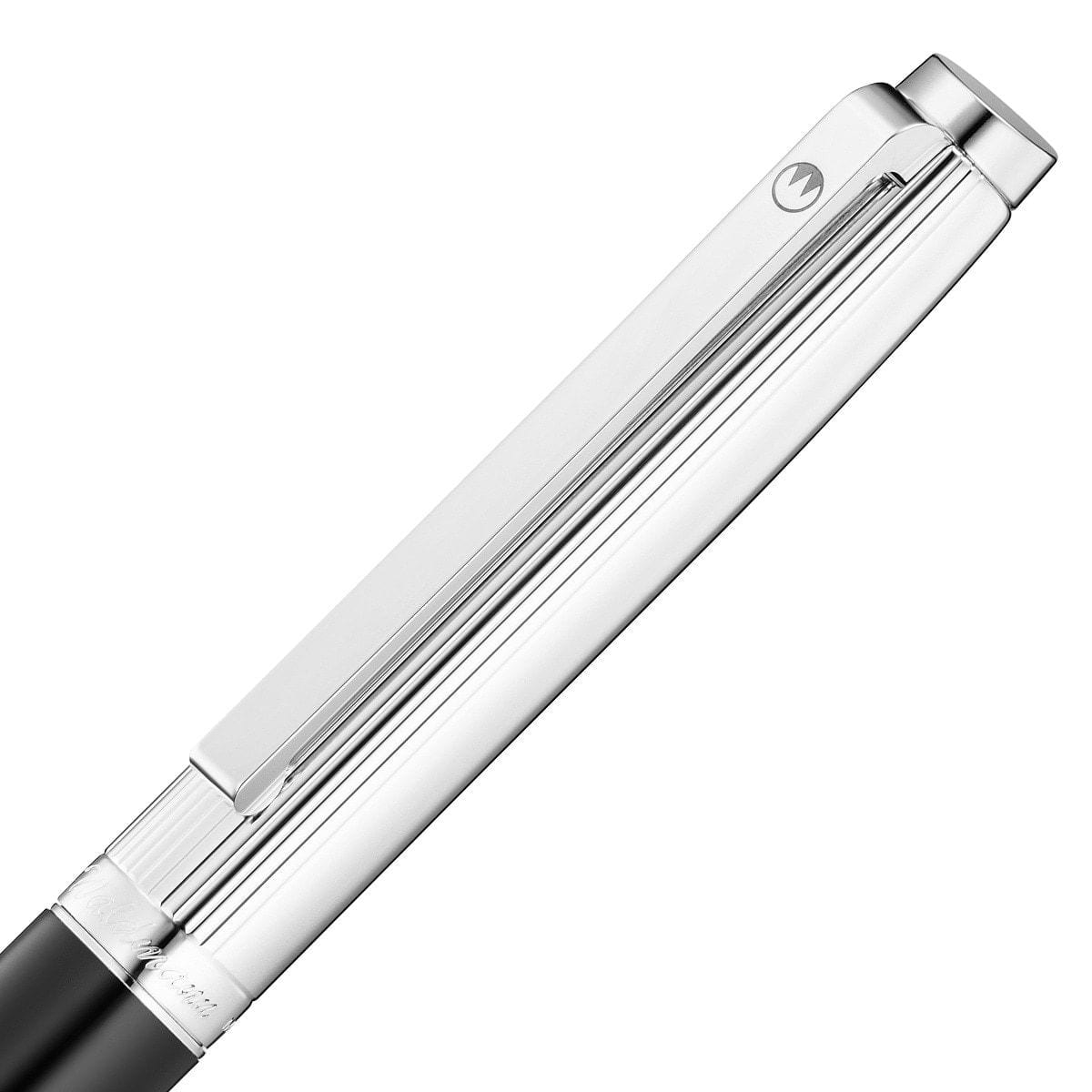Der Waldmann Tuscany Kugelschreiber in schwarz wird mit platinierten Zierelementen vervollständigt und hat ein Modern Classic Design.