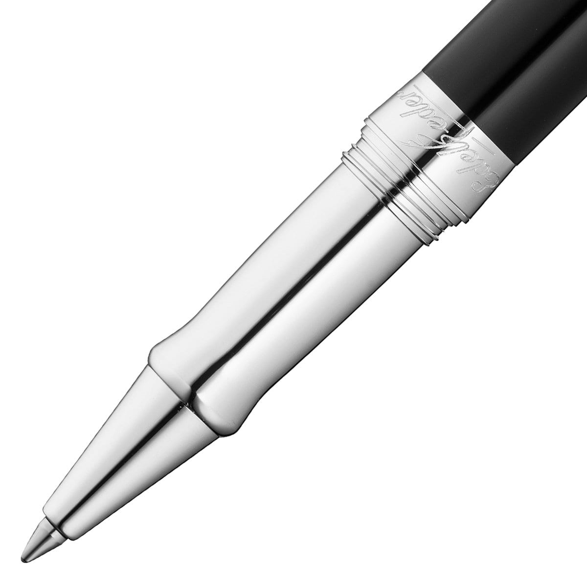 Die schwarze Farbe, ergänzt durch platinierte Zierelemente und einem Modern Classic Design: Das ist der Waldmann Edelfeder Rollerball!