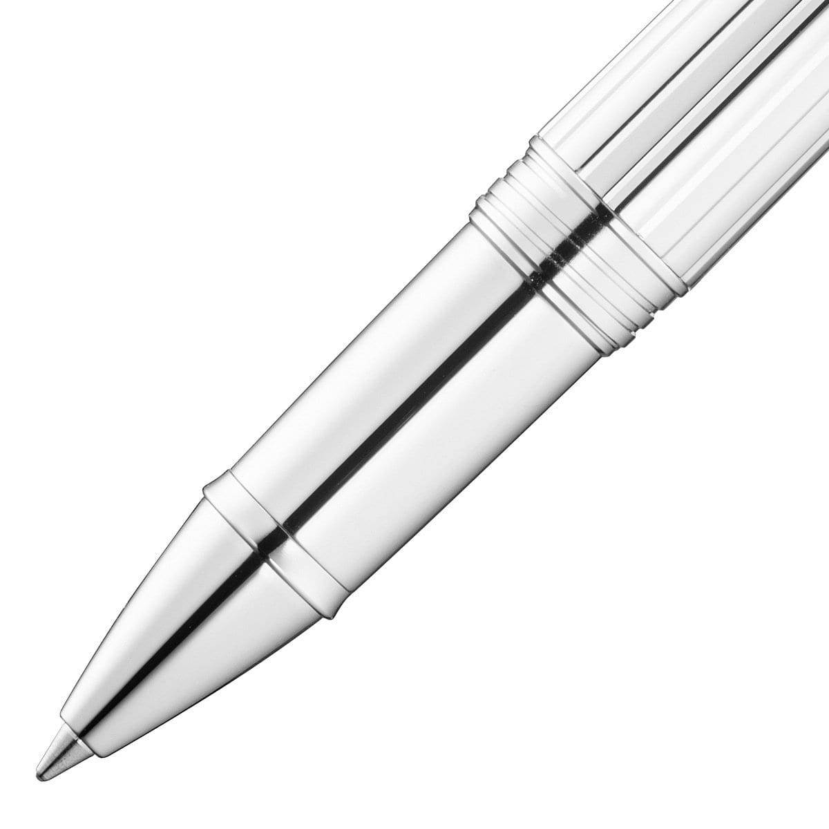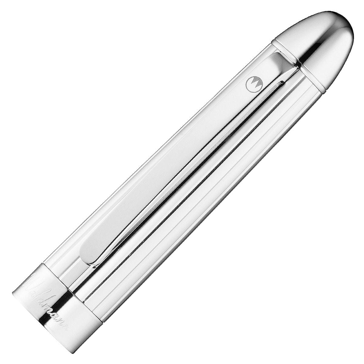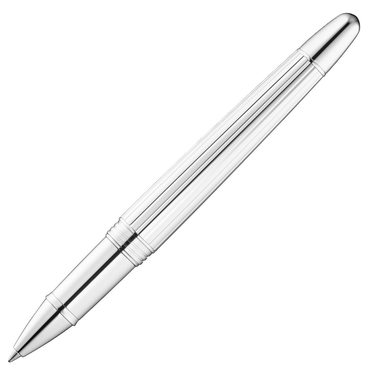 Die silberne Farbe, platinierte Zierelemente und ein Modern Classic Design sind Hauptmerkmale des Waldmann Précieux Rollerballs.