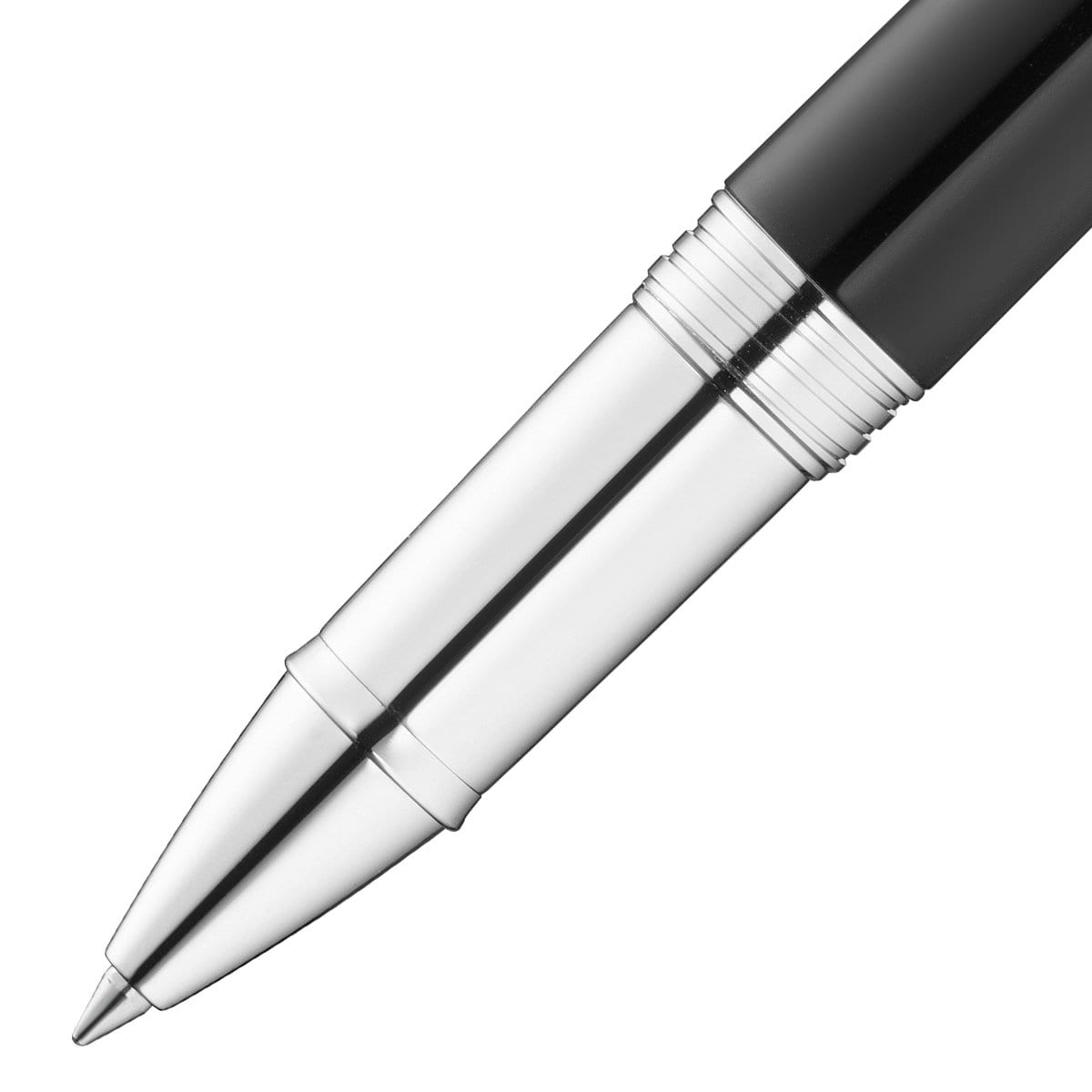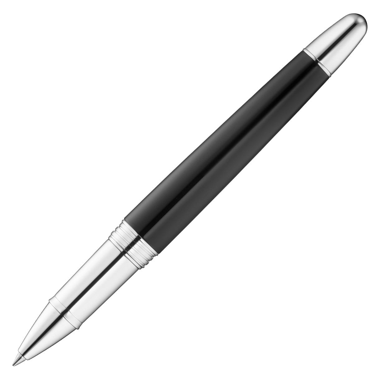 Die schwarze Farbe, platinierte Zierelemente und ein Modern Classic Design sind Hauptmerkmale des Waldmann Précieux Tintenrollers.