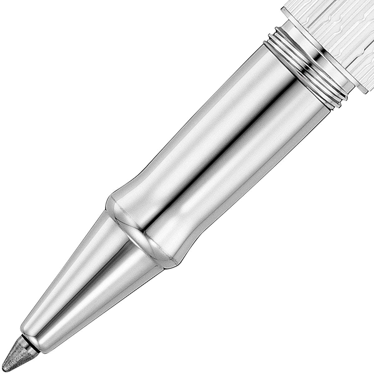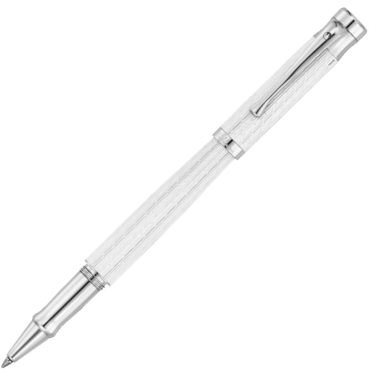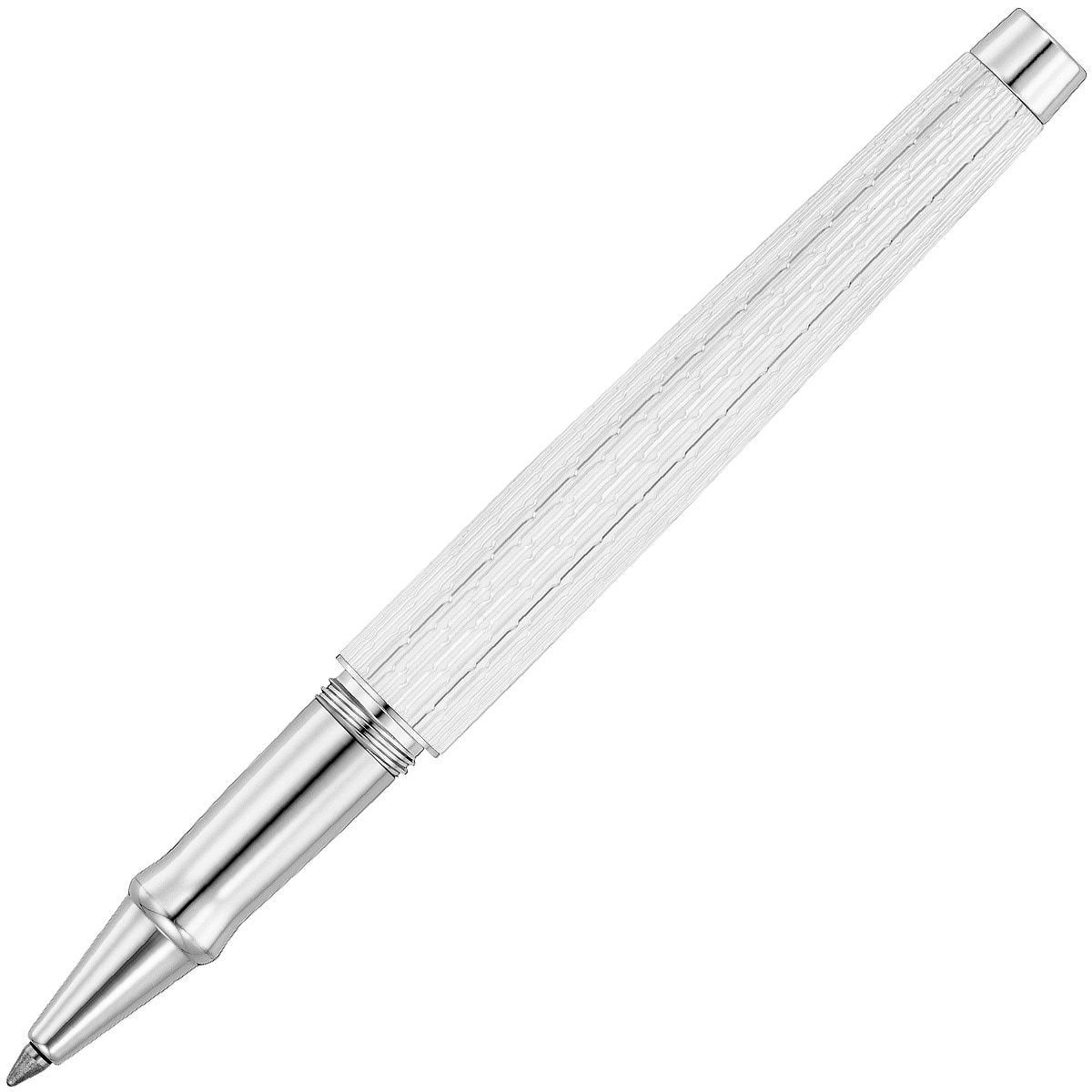 Der Waldmann Tango Imagination Tintenroller in weiß wird mit platinierten Zierelementen vervollständigt und hat ein modernes Design.