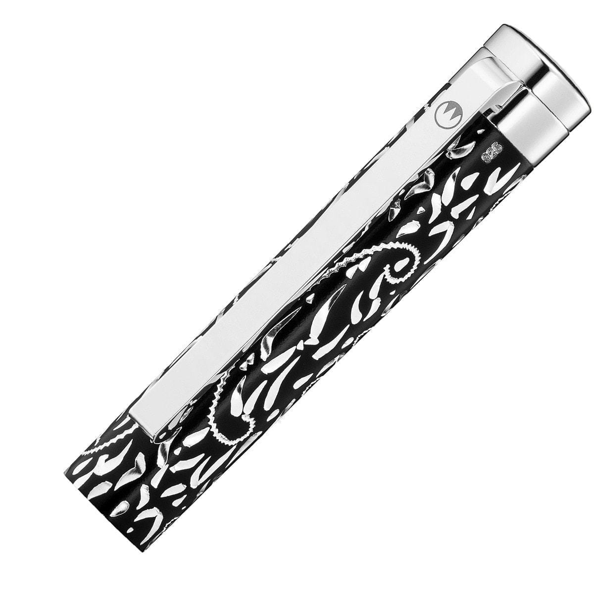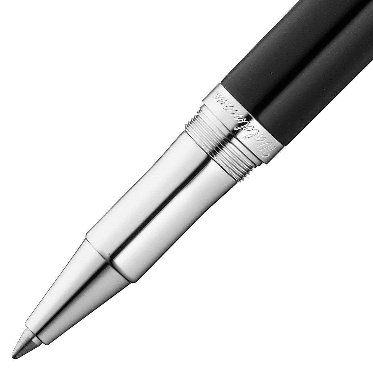 Die schwarze Farbe, ergänzt durch platinierte Zierelemente und einem ungewöhnlichen Design: Das ist der Waldmann Xetra Vienna Rollerball!